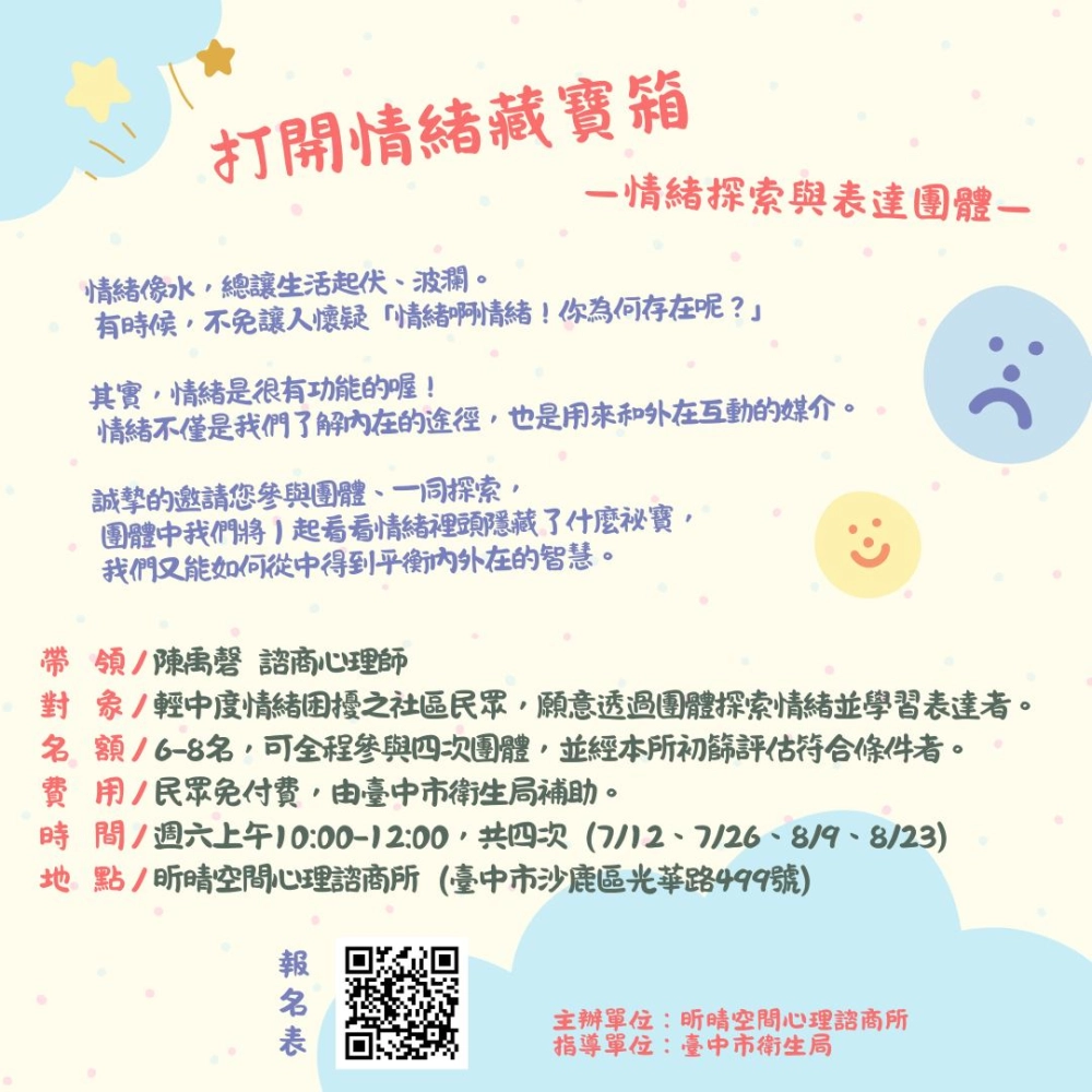 歡迎對情緒主題有興趣的民眾報名參與喔!